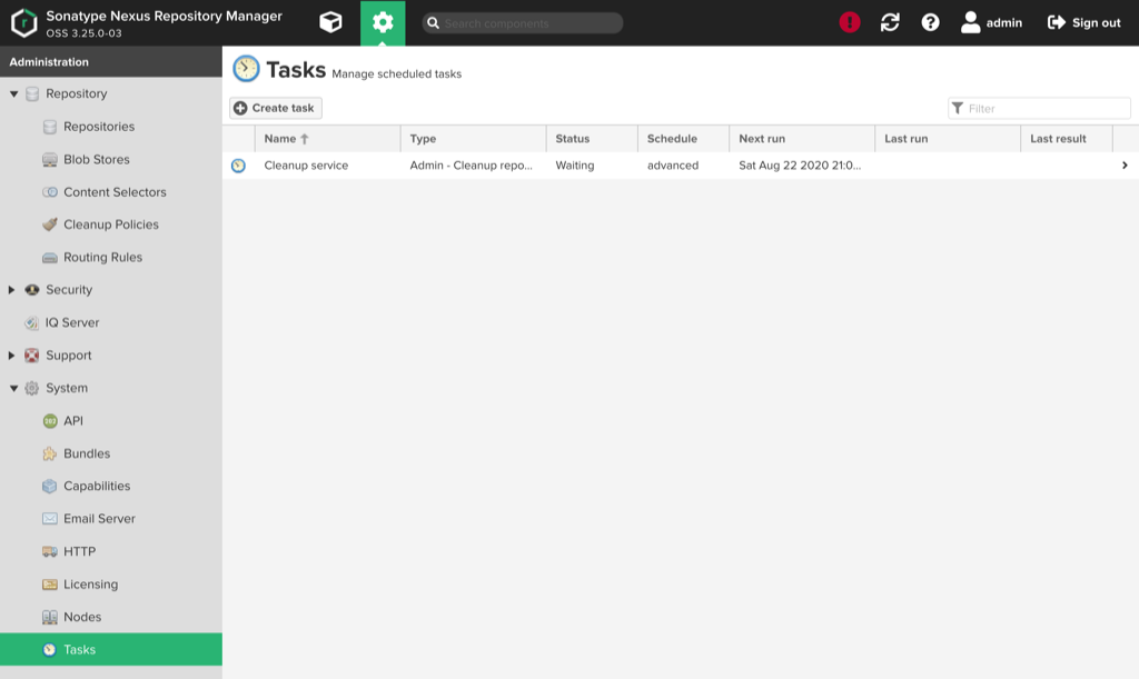 There will now be information about the run that was just scheduled on the main Tasks page. Once the task status is Waiting and the last result is Ok, the task has completed successfully.